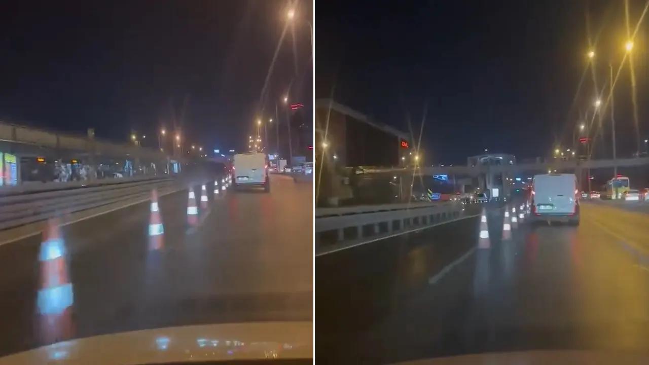 D100 Karayolu Esenyurt Haramidere mevkii Edirne istikametinde metrobüs yolunda yapılan çalışma sebebiyle metrobüs için ayrılan şeritteki dubaları deviren sürücü gözaltına alındı A.A. adlı sürücüye toplam 2 bin 415 lira da ceza kesildi.