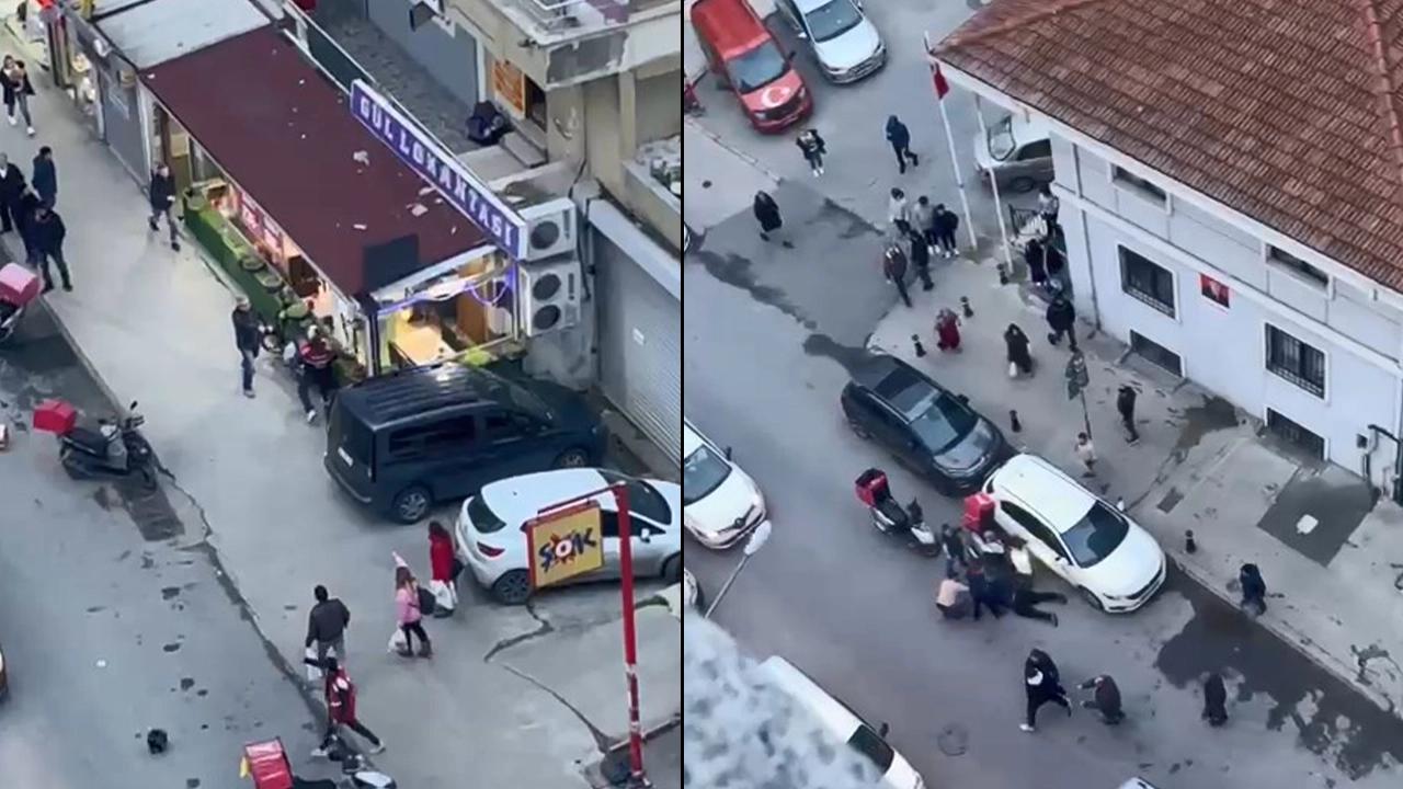 Cep telefonu kamerasına yansıyan görüntülerde iş yerlerinin camlarının çekiçle kırıldığı ve bir motokuryenin kendini görüntüleyen esnafa kask fırlattığı, yumrukla saldırdığı, bir esnafın ise motosiklete sopalarla vurduğu görüldü. Taraflar güçlükle sakinleştirilirken kavgada 4 esnaf yaralandı.