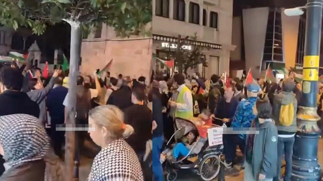 Yüzlerce vatandaş ellerine aldıkları Filistin bayrakları ile Eminönü Meydanı'na kadar yürüyüş düzenledi. Grup "Kahrolsun İsrail" sloganları atarken kadın, erkek, yaşlı, çocuk çok sayıda kişi protestoya katıldı.
