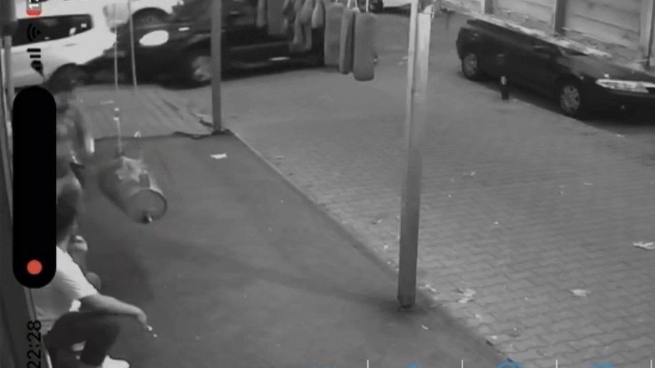Görüntülerde işyerinin önünde birilerinin oturduğu, cipin önce park halindeki araca çarpıp işyerine daldığı, oturanların panikle yerinden kalkarak olay yerine gittiği görülüyor.