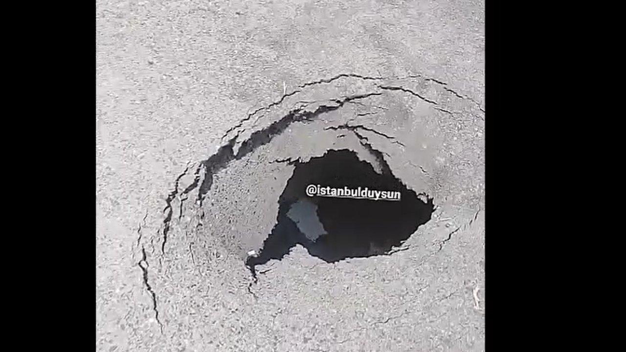 Asfaltta yaşanan çökme nedeniyle yolun bir bölümünde bir metreye yaklaşan bir boşluk oluştuğu görülürken, çevrede herhangi bir güvenlik önlemi olmaması da endişe yarattı.