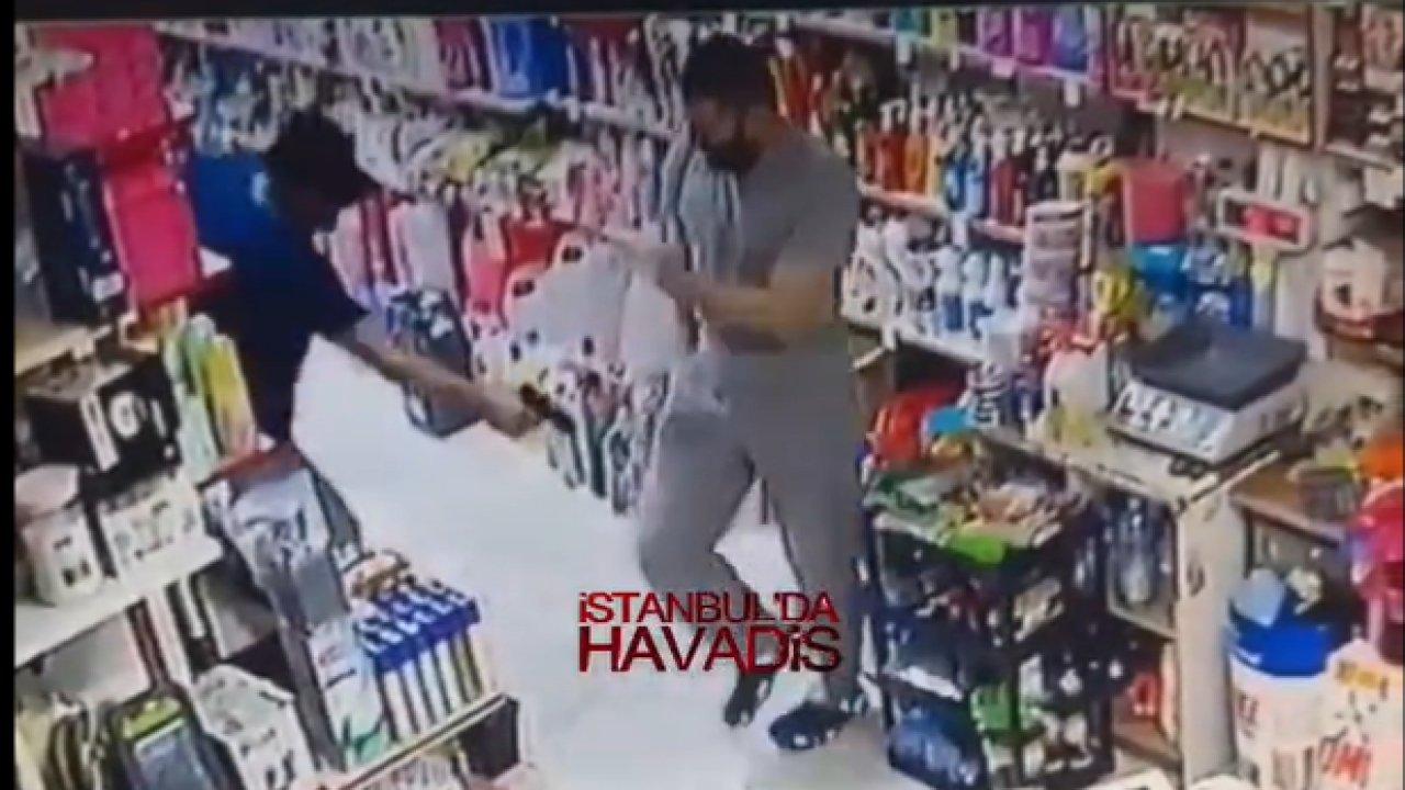 Saldırıya ait görüntüler dükkanın güvenlik kamerası tarafından anbean görüntülenirken iş yeri sahibinin ölümden kıl payı kurtulduğu anlar kameralara yansıdı.