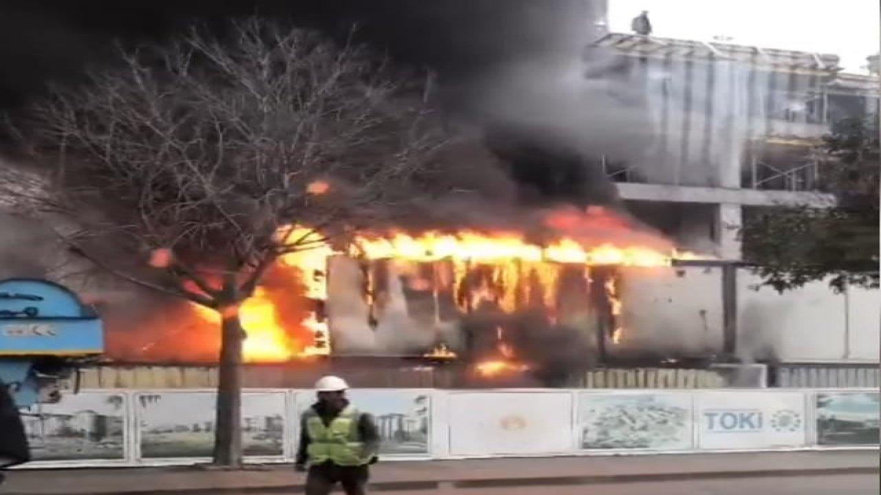 Yangın saat 14.00 sıralarında, Yenişehir Mahallesi Barajyolu Caddesi üzerinde bir inşaat şantiyesinde çıktı. İddiaya göre; şantiyede işçilerin kaldığı konteynerde, bilinmeyen nedenle yangın çıktı. Yangın, kısa sürede büyüyerek diğer konteynerlara sıçradı. Şantiyedeki işçilerin ihbarıyla olay yerine çok sayıda itfaiye, polis ve sağlık ekibi sevk edildi. Şantiye içinde bulunan çok sayıda işçi kendilerini dışarı attı. Yangın, itfaiyenin yarım saat süren çalışmalarının sonunda söndürüldü. Yangın söndürme çalışmaları sırasında, bir itfaiye eri elinden hafif şekilde yaralandı.