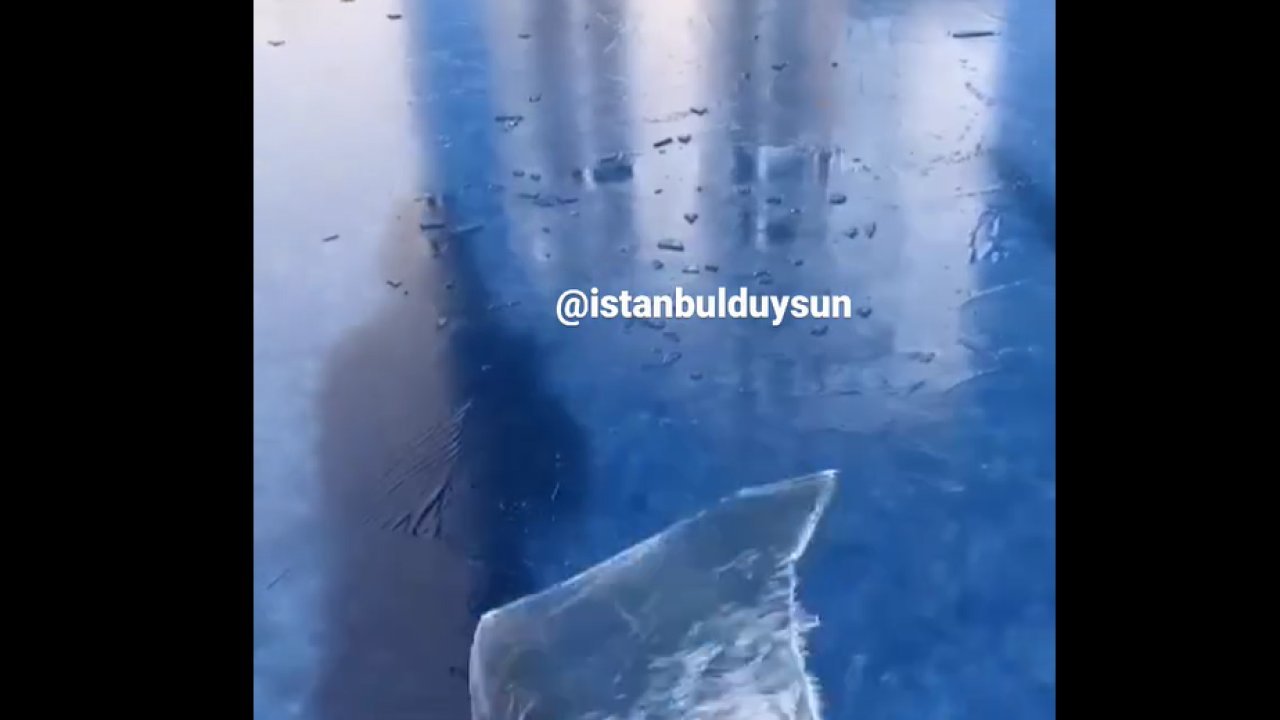 Güneşli mevkiinde yer alan sitenin havuzunun buzlarla kaplandığı görülürken, İstanbul’da yaşanan dondurucu soğuğun boyutu da gözler önüne serilmiş oldu.