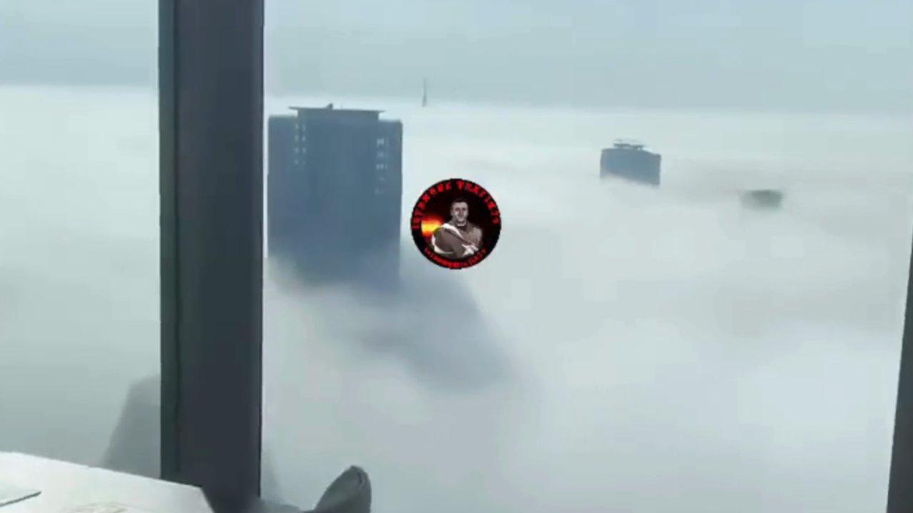 İstanbul Kağıthane'de bulunan bir alışveriş merkezinin teras katından çekilen görüntülerde yoğun sisin oluşturduğu beyaz tabaka ile birlikte unutulmaz anlara sebep oldu.