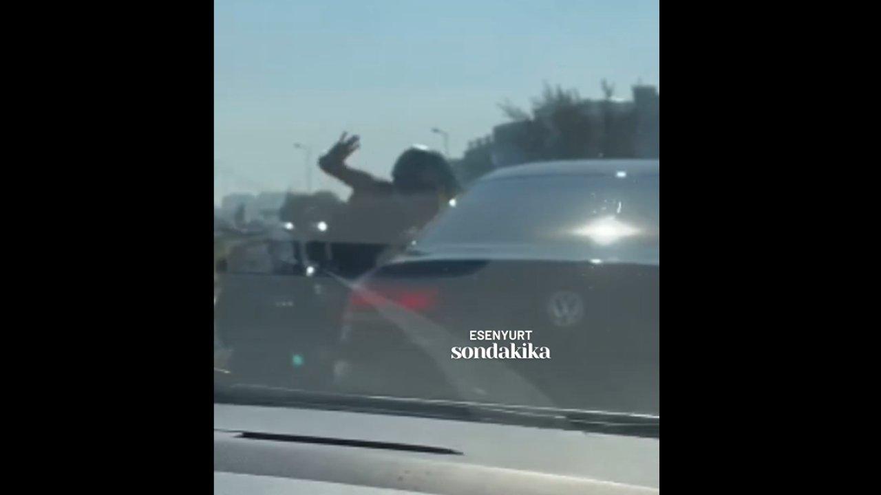 Motoruyla kendisinin sıkıştıran araca yanaşan şoför bir süre araç sahibiyle sözlü tartışmaya girdi. Tartışmanın ardından ise kadın motorcunun aracın camını yumrukladığı görüldü.