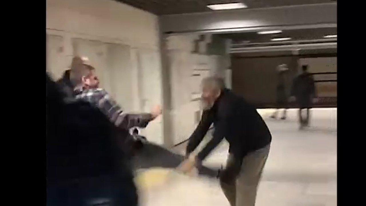 Marmaray’ın Sirkeci durağında bu sabah yaşanan kavganın görüntüleri vatandaşların cep telefonu kameralarına yansıdı.
