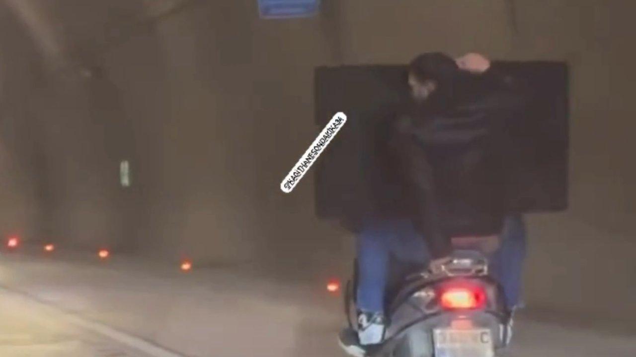 Kağıthane tünelinin Taksim yönü istikametinde yaşanan olayda bir motosiklet sürücüsü arkadaşıyla birlikte yaptığı tehlikeli taşımacılık dikkat çekti.