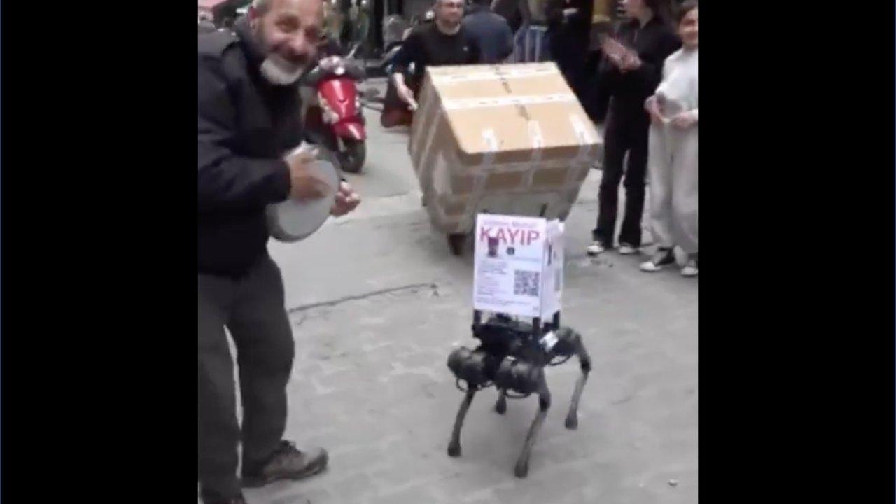 Boston Dynamics adında bir inovasyon şirketi tarafından geliştirilen robot köpek Taksim'de üzerinde 'Sahibim kayıp' ilanıyla dolaşıyor. "Jidoka Dog" isimli robot köpeğin bir darbukacıyla yan yana gelmesiyle oluşan eğlenceli görüntüler sosyal medyada paylaşılarak kısa sürede viral oldu.
