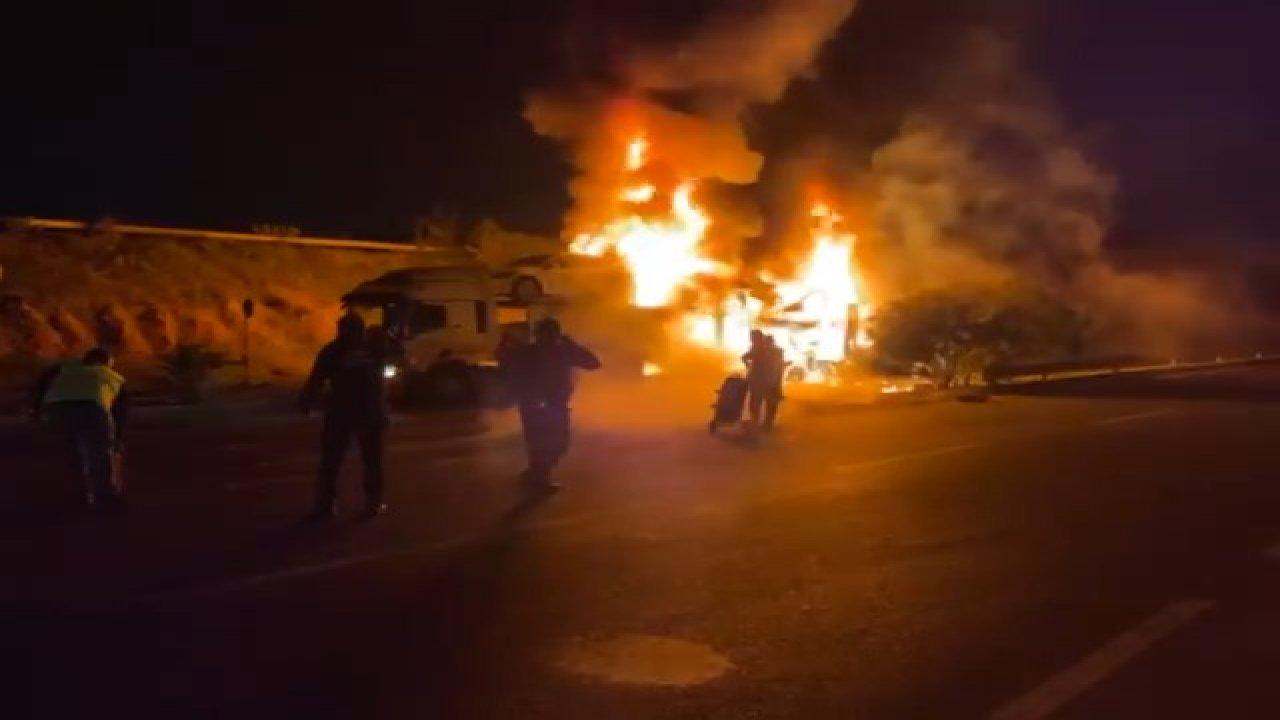 TIR dorsesinde yer alan 6 adet elektrikli araç henüz bilinmeyen bir nedenle yanmaya başladı.