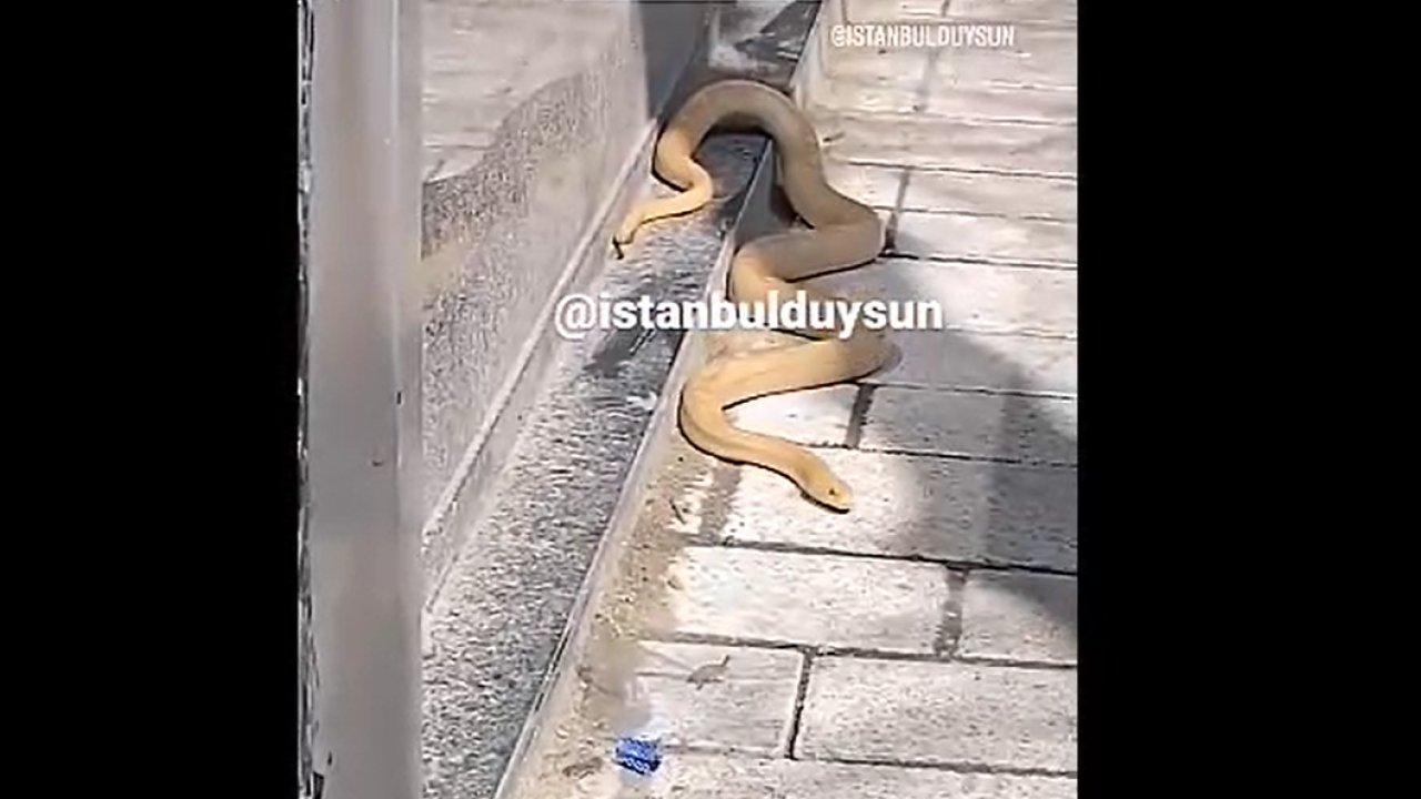 Dev yılanın İstanbul sokaklarında dolaştığı görüntüler kısa sürede binlerce kişi tarafından izlendi.