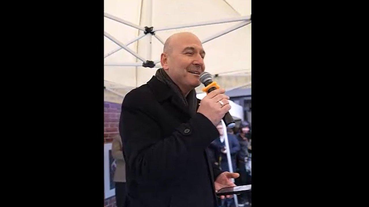 Eyüpsultan Belediye Başkanı Deniz Köken’in de kişisel sosyal medya hesabından yayınladığı görüntülerde Soylu’nun şarkının sözlerini cep telefonundan bakarak seslendirdiği görüldü.