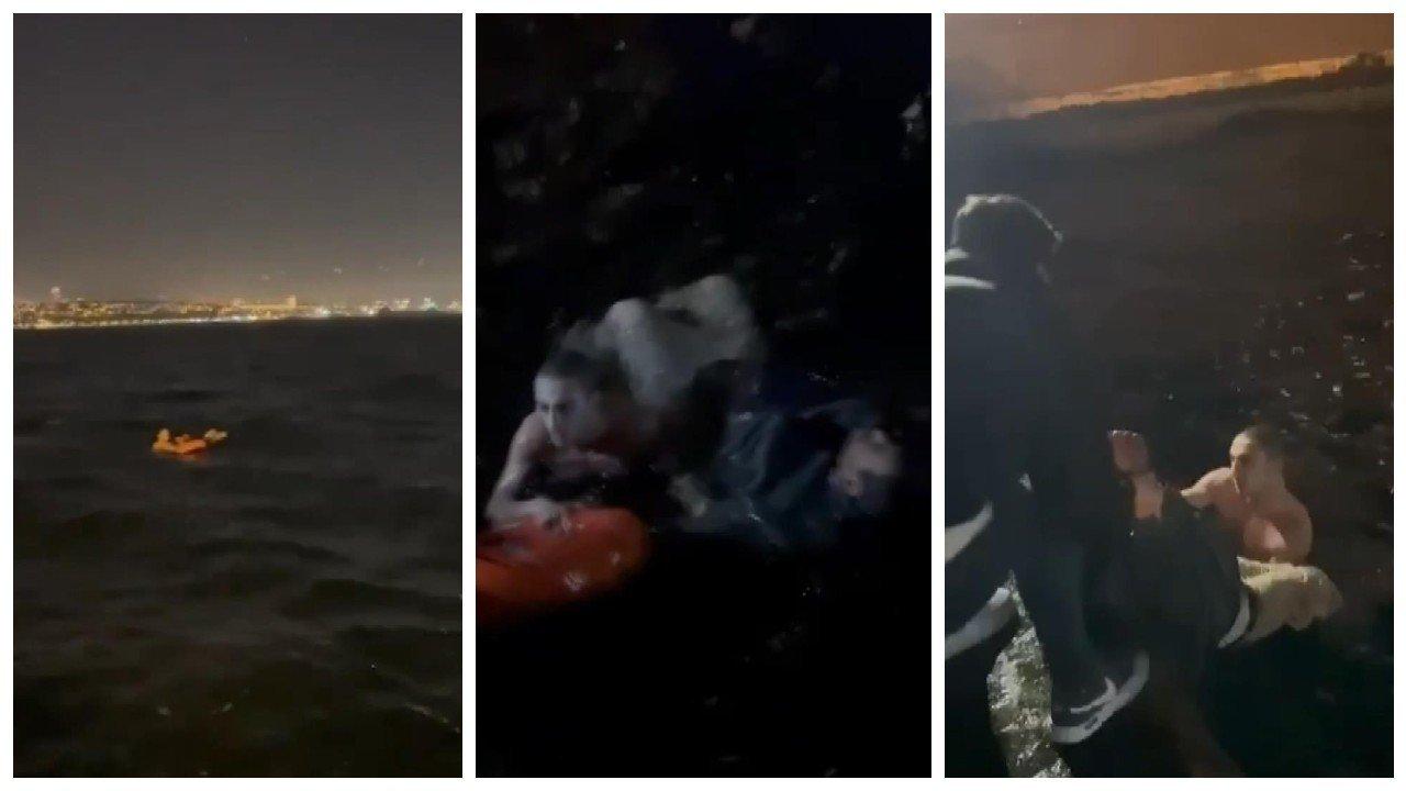 İstanbul’da gece saatlerinde soğuk denizde yaşanan hayat kurtarma mücadelesi vatandaşlar tarafından cep telefonu kameraları ile anbean görüntülendi.
