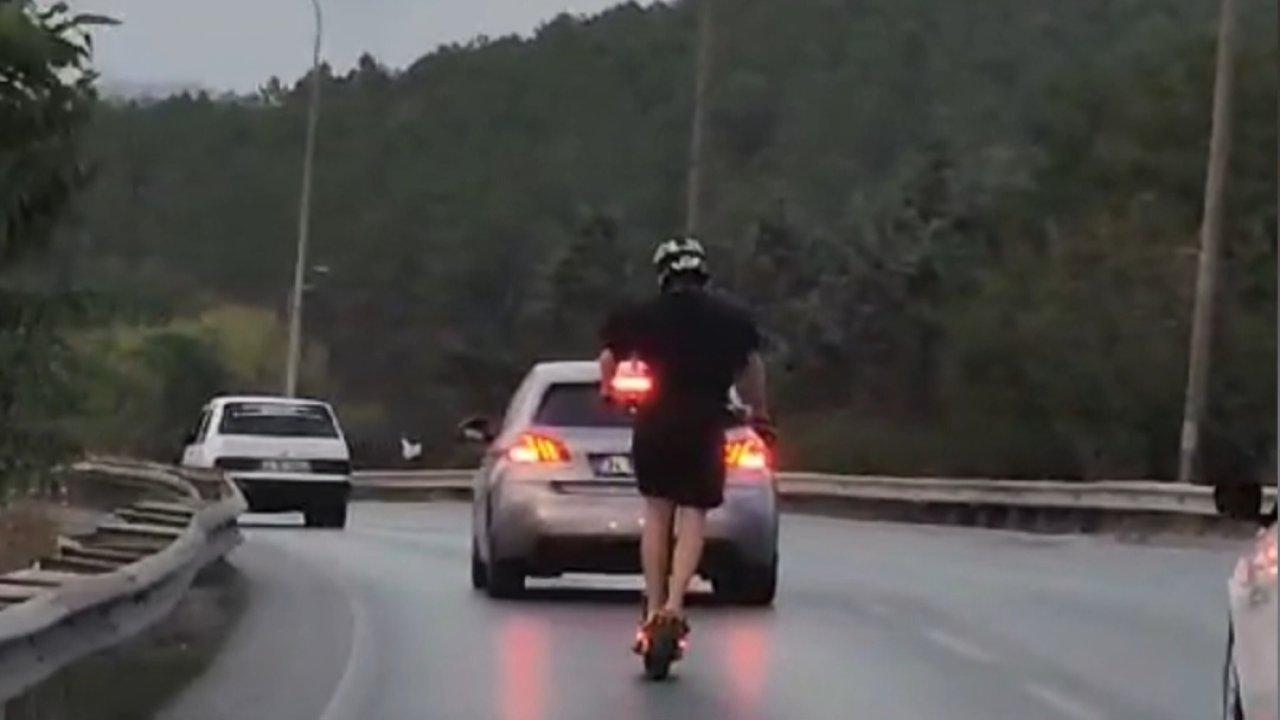 Olay, sabah saatlerinde Şile Otoyolu, Çekmeköy istikametinde yaşandı. Skuter ile ilerleyen bir kişi, hem kendi hayatını ve hem de trafik güvenliğini tehlikeye attı. Otomobillerin arasında ilerlemeye devam eden skuter sürücüsü başka bir sürücü tarafından cep telefonu ile kaydedildi. Zaman zaman sol şeride zaman da diğer şeritlere geçen skuter sürücüsünün hızlı ilerlemesi dikkatlerden kaçmadı. Skuter sürücüsünün sadece kask takarak güvenlik önlemi alması da cep telefonu kamerasına yansıdı.