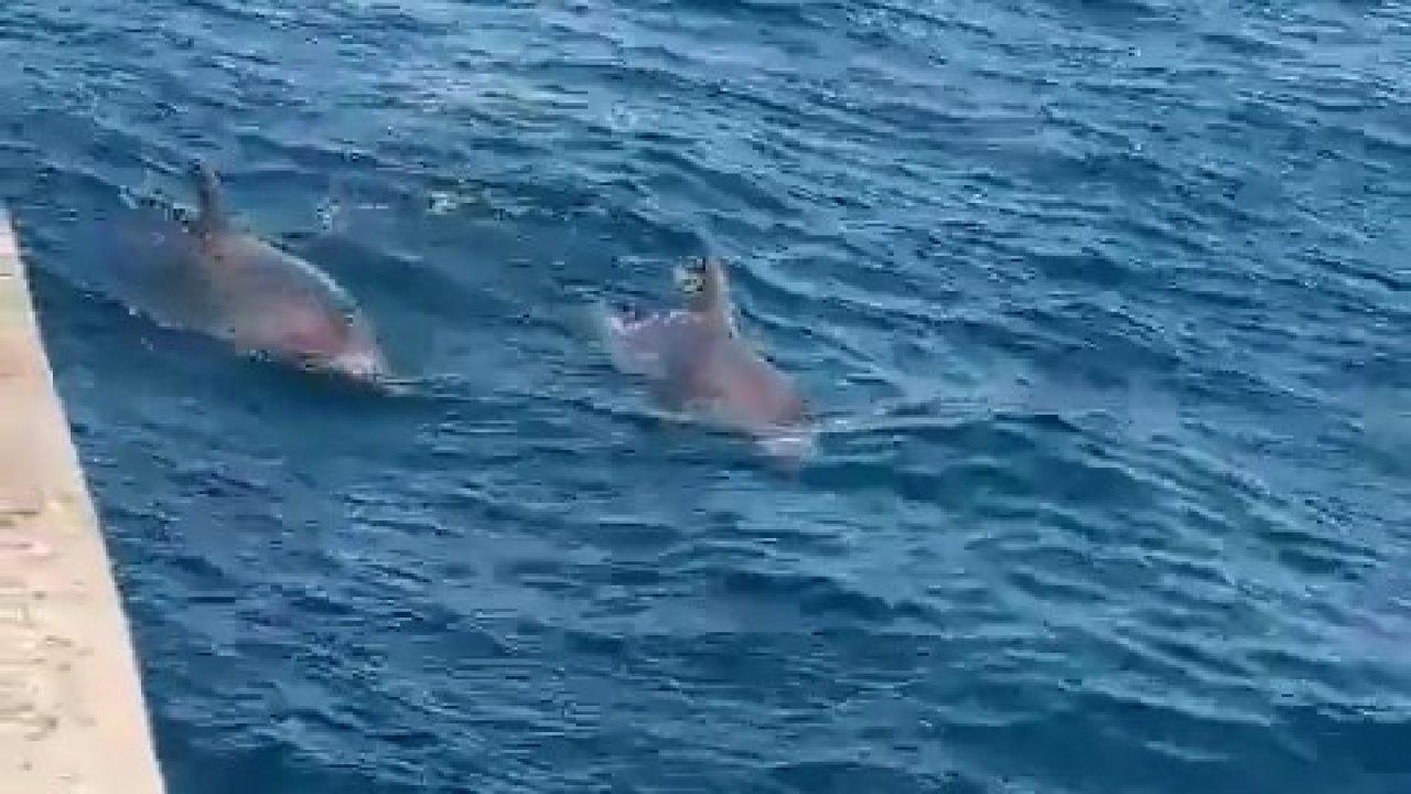 Denizde bir süre atlayarak dans eden yunuslar vatandaşlar tarafından ilgiyle izlendi. Balıklar kısa bir süre sonra gözden kayboldu.