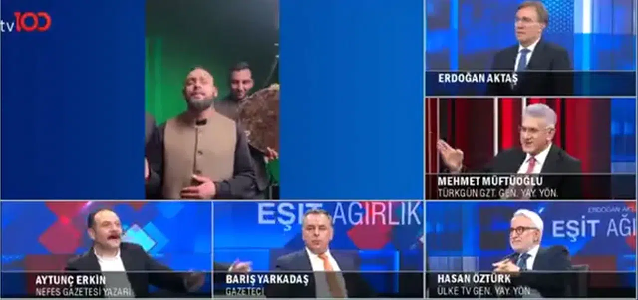 TV100’de yayınlanan “Erdoğan Aktaş ile Eşit Ağırlık” programında ilahi konuşulurken, stüdyoda dikkat çeken bir an yaşandı.