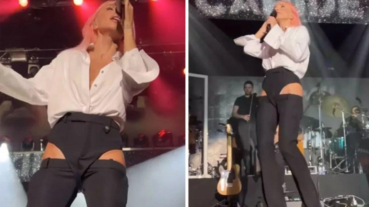 Siyah pantolon ve beyaz bir gömlekle sahneye çıkan yıldızın pantolon seçimi ise olay yarattı. Yanları açık tasarım bir pantolon tercih eden Gülşen’in kalçasına yaptırdığı çilek dövmesi de böylece açığa çıkmış oldu.