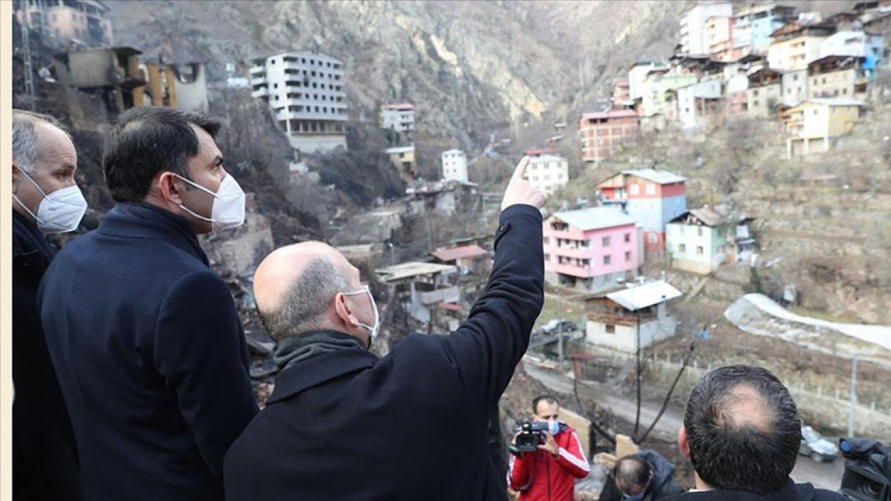 Soylu ve Kurum çok sayıda evin yandığı Dereiçi köyünde incelemelerde bulundu