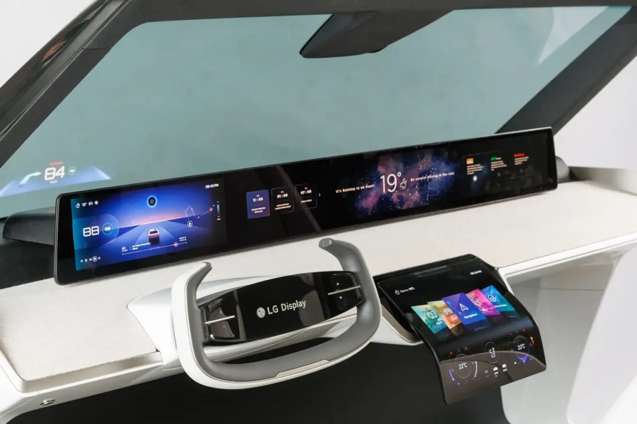LG Display’in sergilediği en dikkat çekici ürünlerden biri, %50’ye kadar genişleyebilen 100ppi esnek otomotiv ekranı oldu. Bu teknoloji, düz ekran yüzeylerinin fiziksel düğmelere dönüşmesini sağlayarak sürüş sırasında kullanım kolaylığı sunuyor. Ekrana dokunulduğunda, önceden düz olan yüzey şişerek buton ve kadranlara dönüşüyor.
