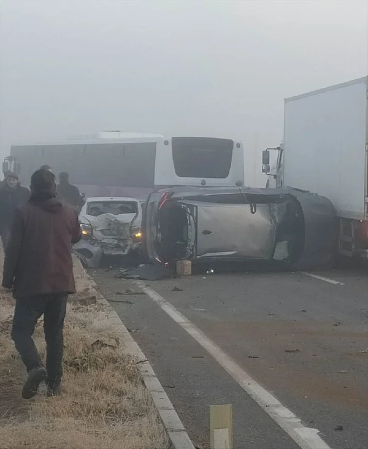 Yaklaşık 30 aracın karıştığı trafik kazalarında ilk belirlemelere göre 2 kişi öldü, 15 kişi yaralandı, yol trafiğe kapatıldı.