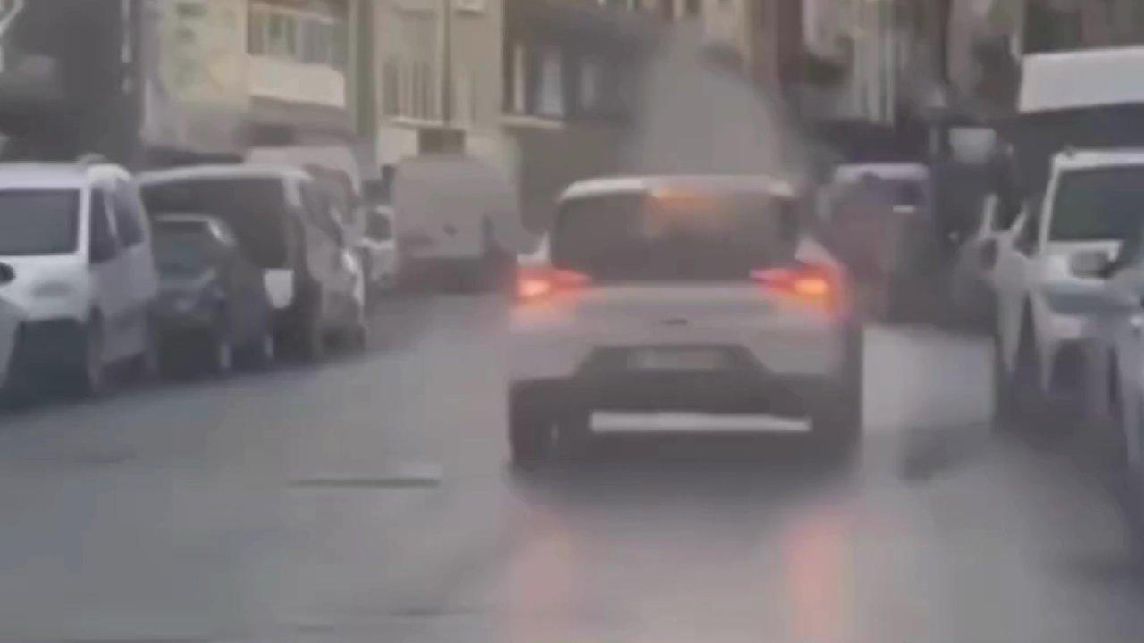İstanbul Esenler'de bir sürücü, önünde seyir halinde ilerleyen şoförün ara sokakta drift yaptığı anları kaydetti.