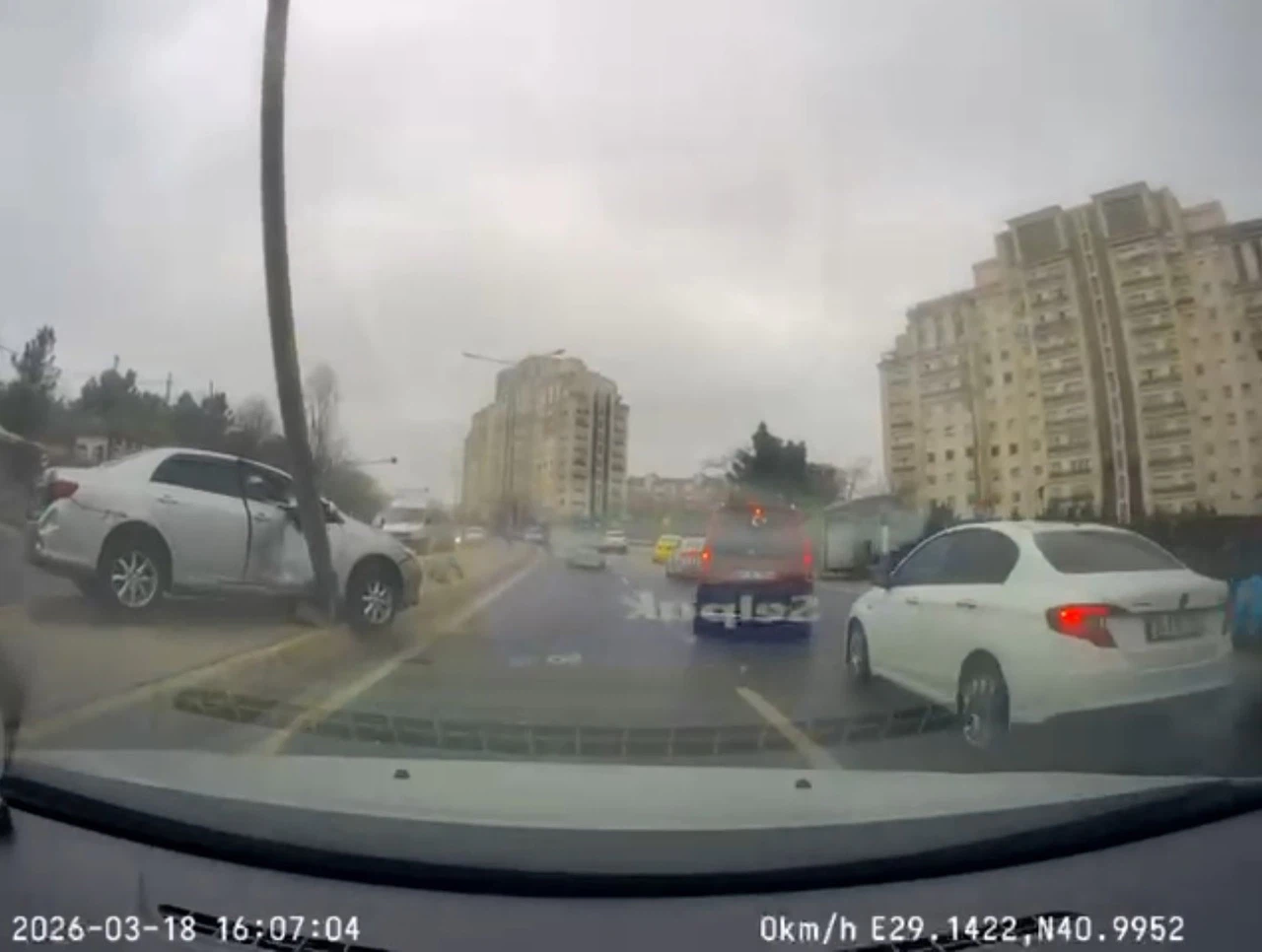 İstanbul Ataşehir Kayışdağı Caddesi üzerinde saat 16.00 sıralarında meydana gelen kazada, seyir halindeki otomobil, sürücüsünün direksiyon hakimiyetini kaybetmesi sonucu kontrolden çıktı.