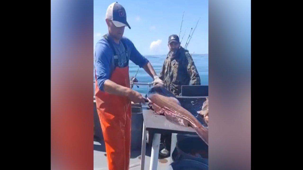 Yabancı bir balıkçı, tuttuğu büyük bir balığı doğrarken bir iş arkadaşı da kendisini kameraya alıyordu. Balıkçı, dev balığı doğradığı sırada ilginç bir olay yaşandı. Balığın midesinden bir şişe viski çıktı.