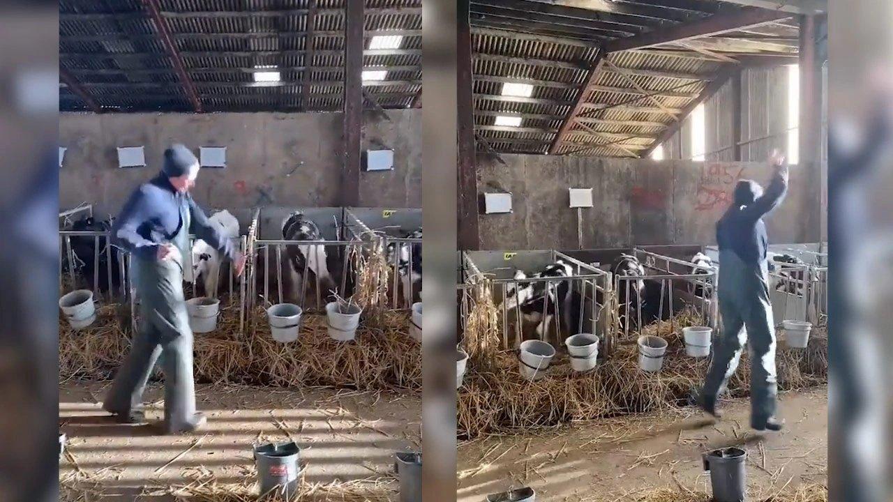 Buzağılar kendilerine bakan adamın dansını görünce dans etmeye başlarlar. Buzağıların olay yerinde zıplayıp zıpladığı görüntüler sosyal ağlarda haber oldu.