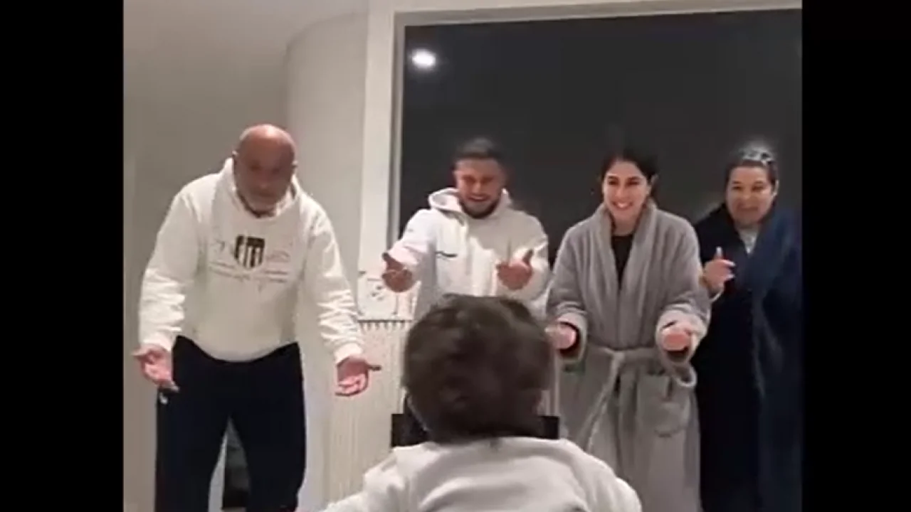 Yurt dışında çekilen görüntülerde tüm aile üyeleri bir bebeğin karşısına dizilerek miniğin aralarından kimi seçeceğini öğretmek istedi.
