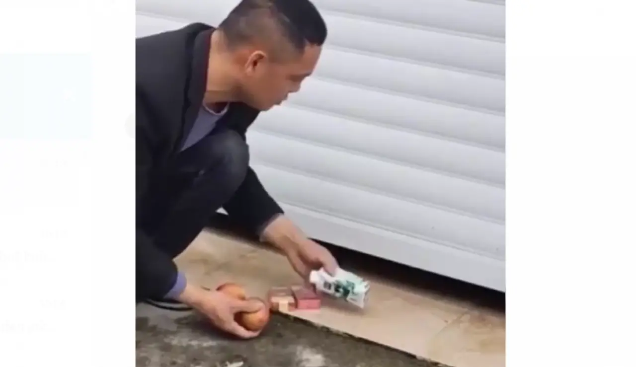 Sosyal medyada paylaşılan bir videoda elindekileri beğenmeyen bir adam adeta elindeki ürünlerle kumar oynadı. Elinde yumurta, içecek ve sigara bulunan adam bir dükkan kepenginin altına ürünleri attığında çoğalarak aynısından geldiğini fark etti.