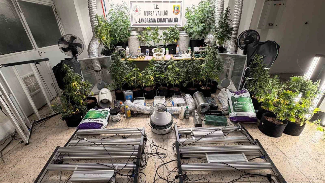 Nilüfer ilçesinde uyuşturucu imalathanesine çevrilen bir evde 4 parça halinde 755 gram kubar esrar, 27 kök skunk bitkisi, 4 kök kenevir bitkisi, 4 adet iklimlendirme sistemi, 1 adet pres makinesi, çok sayıda şeffaf poşet ve kilitli şeffaf poşet ele geçirldi.