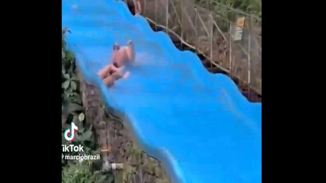 Sosyal medyada viral olan Tiktok videosu görüntülerinde, uzun bir su kaydırağındaki iki kadının yaşadığı komik anlar yer alıyor. Arkadaşları tarafından cep telefonu kamerası ile görüntülenen kadınlar, su kaydırağından kayarak havuza düşüyor.