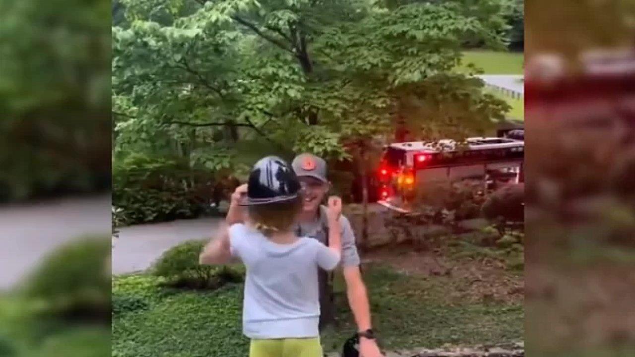 Evinin bahçesinden her gün itfaiye arabasının geçmesini bekleyen sevimli minik, itfaiye aracını gördüğü gibi sürekli el sallıyordu.
