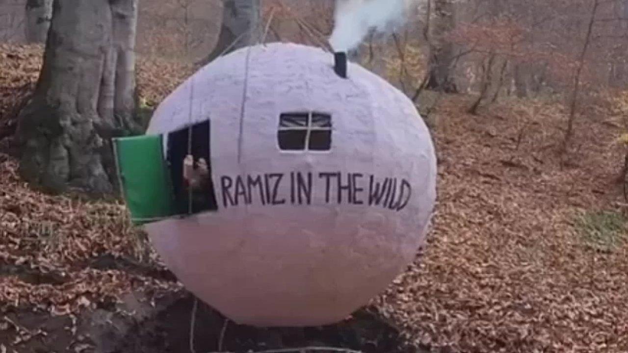 Kış aylarında soğuk ve hava şartlarından etkilenmemek için kulübenin dışını çamurla kaplayıp üzerine "Ramiz in the wild" (Ramiz vahşi doğada) yazmayı da ihmal etmedi.