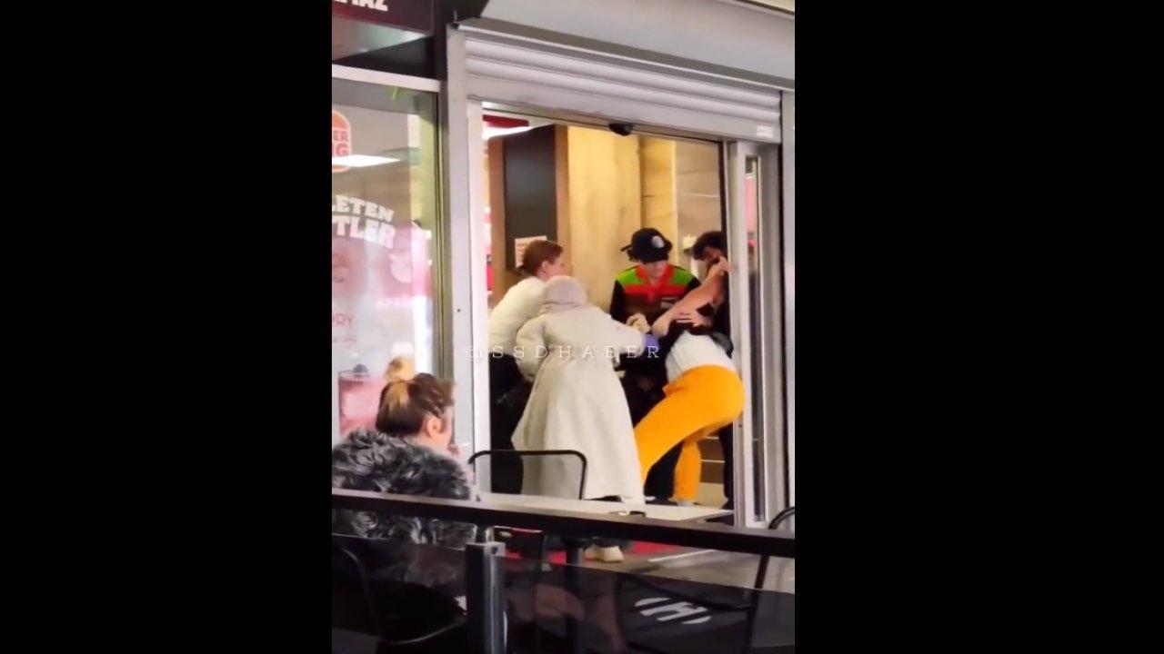 Sakarya'da bir kişi, fast food şubesindeki çalışanlara "Kahrolsun İsrail" diyerek saldırdı. Çalışanlarla saldırganı güçlükle ayıran çevredekiler yaşanan o anları cep telefonu kamerası ile an bean kaydetti.