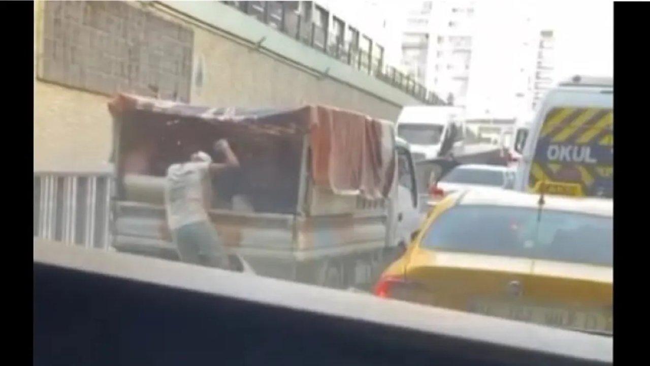 Meydan alt geçitinde yaşanan kaza nedeniyle yolda trafik oluştu. Bir gençte o trafiği fırsat bilip kamyonet kasasından inerek yolun ortasında dans etmeye başladı.