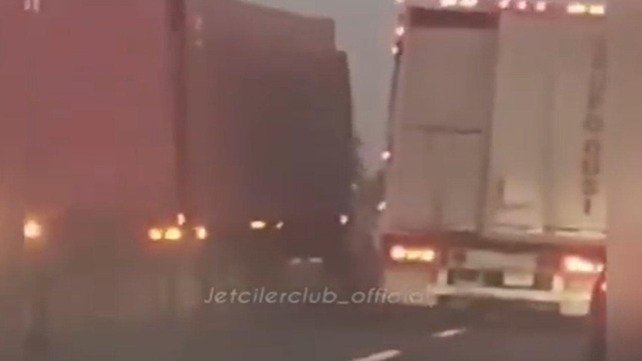 Tüm dünyada kısa sürede yayılan görüntülerde yol boyunca diğer araçlarla inatlaşan tır şoförünün başına gelenler görülüyor.