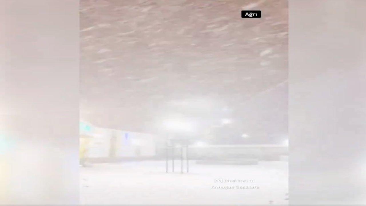 Ağrı'nın Doğubeyazıt ilçesinde dün akşam saatlerinde etkisini gösteren kuvvetli kar yağışı bir kişinin cep telefonu kamerasına yansıdı. Yaşanan o anlarda karın tadını çıkarmak için dışıra çıkan vatandaşlar ayakta güçlükle durdu.