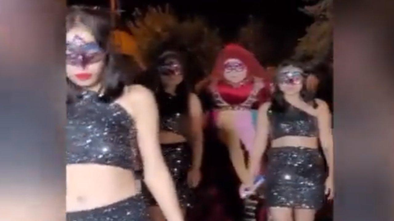 Muhafazakar kına gecesinde maskeli, mini etekli dans şov! #neslicantay #kınagecesi #taha #balık #ailesi