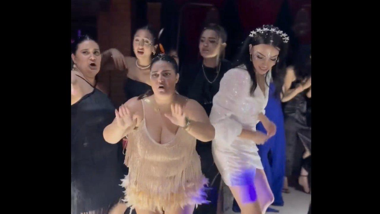 Nedimelerin dansı düğüne renk kattı. Sosyal medyada paylaşılan video binlerce kişi tarafından izlendi.