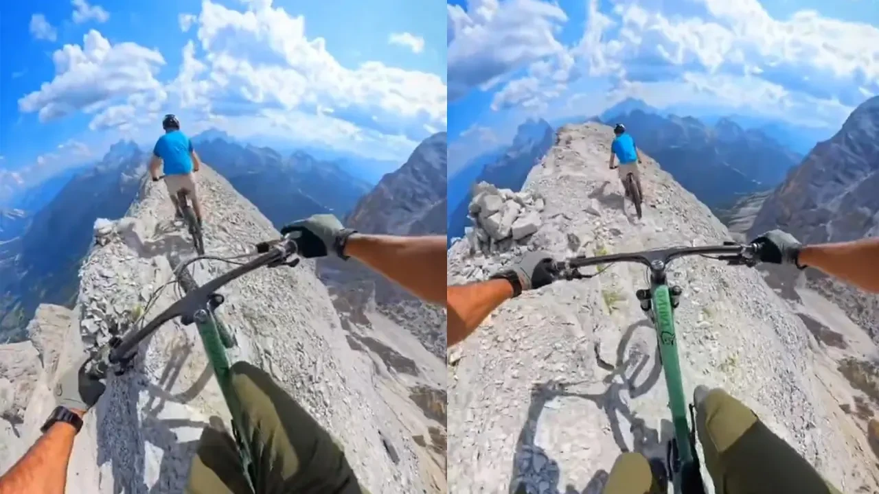 Bisikletçi Andres Tonelli ve Giovanni Mattiello bir araya gelerek uçurum olan dik bir dağın üstünde bisiklet sürdü. İkilinin her iki yanının uçurum olmasına rağmen dağda bisiklet sürmeye devam etmesi yürekleri ağza getirdi.