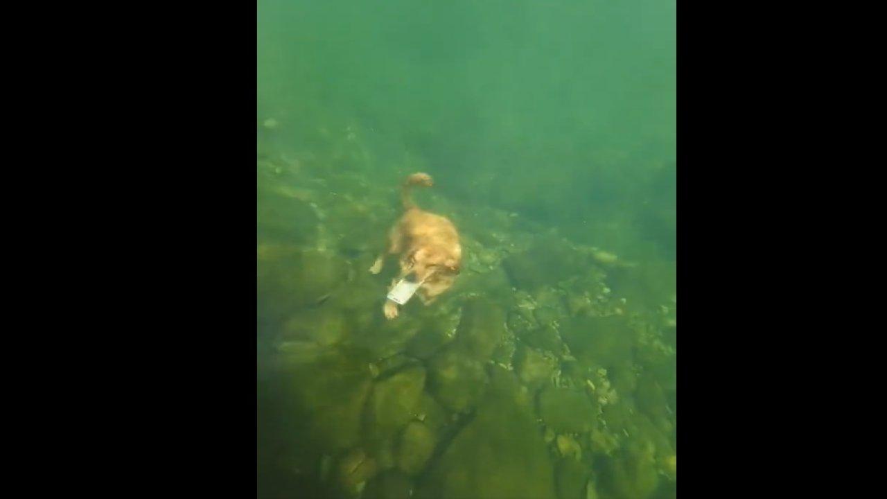 Denizin altına dalan köpek, sahibi ne isterse yerine getirdi. Köpeğin hem yüzme becerisini geliştiren ve eğlendiği o anlar kameraya saniye saniye yansıdı.