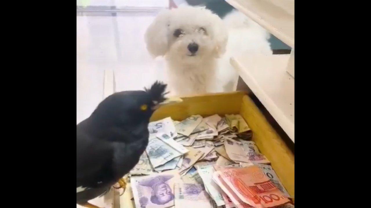 Sahibi tarafından özel olarak eğitilen kuş, sokaktan topladığı kağıt paraları eve getiriyor. Camdan eve giriş yapan kuş paraların toplandığı çekmeyece doğru yönelerek ağzında getirdiği paraları oraya bırakıyor.