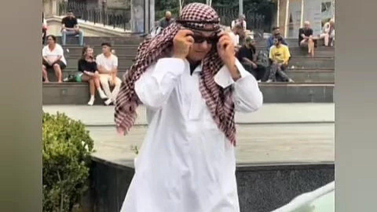 Arap kıyafetlerini giymesi üzerine gelen taksiye binerek uzaklaşan genç, sonrasında yaptığı bu deneyi "Ben taktiği buldum" notuyla sosyal medya hesabından paylaştı.
