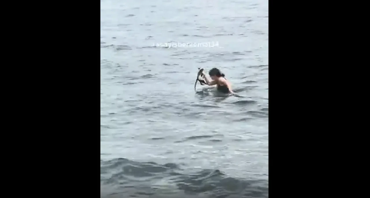 Turist bir kadın, çevredeki insanların bakakaldığı bir anda soğuk havaya rağmen denize düşen kediyi kurtarmak için tereddüt etmeden suya atladı. Kurtarma anı çevredeki vatandaşlar tarafından cep telefonu kamerasıyla kaydedildi ve kısa sürede sosyal medyada yayılarak büyük takdir topladı.