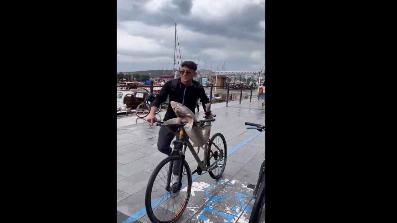 Yavru köpek balığını bisikletine koyup gezdirdi #köpekbalığı #akrepyeniayı #ayşenurparlak #10aralıkpazar #etnayanardağı #a101eciddiboykotzamanı #ömerhttps://t.co/LhgkZMr2xO