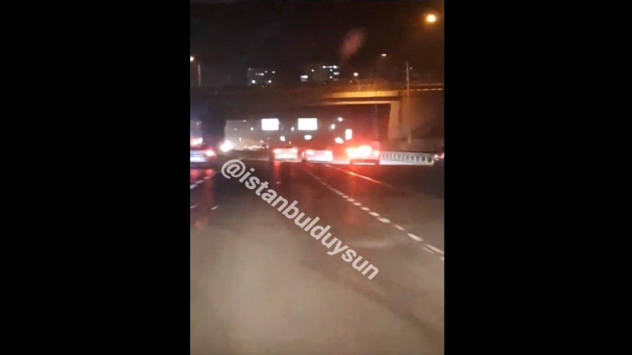 İstanbul Sultangazi ilçesi Habipler otoyolunda asker konvoyu yapan bir grubun trafiği tehlikeye soktuğu anlar kameraya yansıdı.
