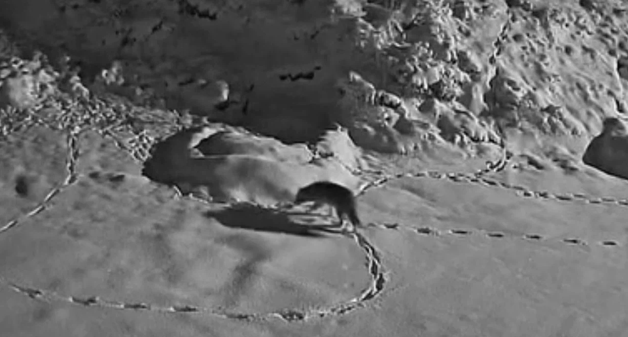 Bir süre evin etrafında gezinen ve yiyecek arayan kurt, ardından ormanlık alana doğru giderek gözden kayboldu. O anlar güvenlik kameralarına yansıdı.