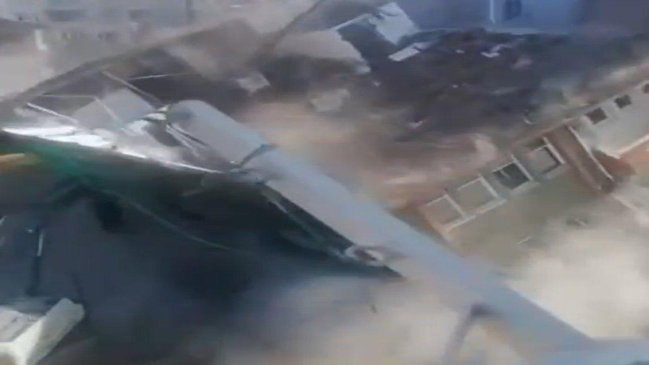 Malatya'da ağır hasar alan 4 katlı bina, yıkım sırasında kepçenin üzerine yıkıldı. O anlar, cep telefonu kamerası ile görüntülendi.