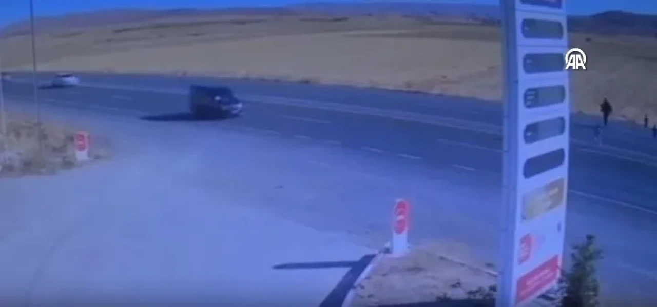 Öte yandan kaza anı, bölgedeki bir akaryakıt istasyonunun güvenlik kamerasınca kaydedildi.